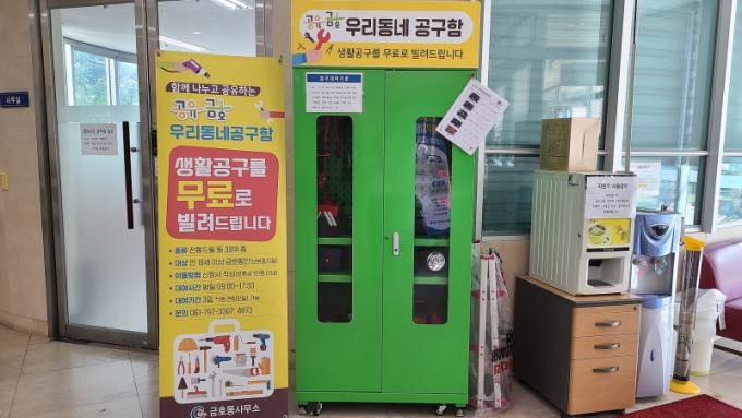¡®°øÀ¯±ÝÈ£ ¿ì¸® µ¿³× °ø±¸ÇÔ¡¯Àº »ç¿ë ºóµµ°¡ ³·¾Æ ±¸¸Å°¡ ºÎ´ãÀ̰ųª º¸°üÀÌ ¾î·Á¿î °ø±¸¸¦ Áֹο¡°Ô ¹«·á·Î ´ë¿©ÇÏ´Â ¼ºñ½ºÀÌ´Ù. »ýȰ°ø±¸´Â ±ÝÈ£µ¿ ÁÖ¹ÎÀÚÄ¡¼¾ÅÍ 1Ãþ »ç¹«½Ç¿¡¼ ´ë¿© °¡´ÉÇϸç, ¿î¿µ½Ã°£Àº ÆòÀÏ ¿ÀÀü 9½Ã~¿ÀÈÄ 5½Ã 30ºÐÀÌ´Ù.