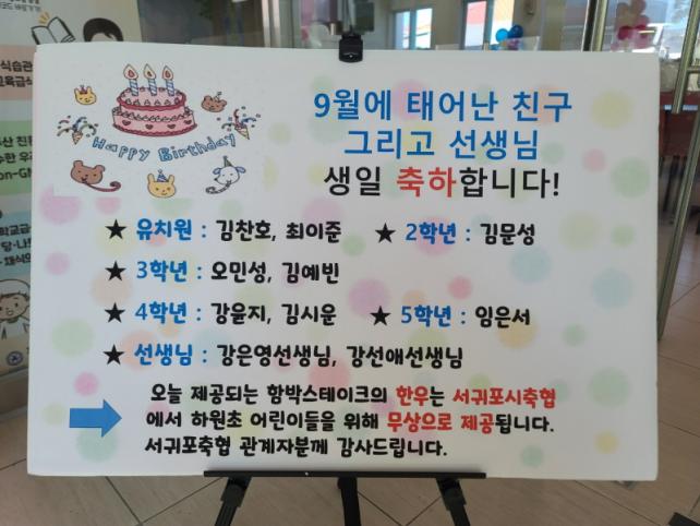º»±³¿¡¼´Â Æò¼Ò¿¡ ´Ù¾çÇÏ°í ¸ÀÀÖ´Â ±Þ½ÄÀ» Á¦°øÇϰí ÀÖÀ¸¸ç, À̹ø 9¿ù »ýÀÏ ÃàÇÏÀÇ ³¯À» ¸Â¾Æ Á¦ÁÖ»ê Çѿ츦 ÀÌ¿ëÇÑ ÇÑ¿ìÇÔ¹Ú½ºÅ×ÀÌÅ©, °¨ÀÚ½ºÇÁ, ¾ç¹èÃß»ø·¯µå, °¨±ÖÁ꽺, ¸¶Ä«·Õ, ½Ò¹äÀ¸·Î ½Ä´ÜÀ» ±¸¼ºÇÏ¿© Àü±³»ý ¹× À¯Ä¡¿ø»ý¿¡°Ô Á¡½É ±Þ½ÄÀ¸·Î Á¦°øÇß´Ù.