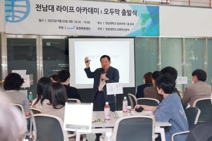 Àü³²´ë´Â ¿Ã °¡À» ±³¾ç ±³°ú¸ñÀ¸·Î <¶óÀÌÇÁ ¾ÆÄ«µ¥¹Ì: ¿ÀµÎ¸·>À» °³¼³ÇØ 42¸íÀÇ Áö¿øÀÚ °¡¿îµ¥ 26¸íÀ» ¼±¹ßÇØ ¿î¿µ¿¡ µé¾î°¬´Ù. ´ãÀÓÀº ȲÀΰ¢ ±³¼ö(¹°¸®Çаú)°¡ ¸Ã¾Ò´Ù. ¾Õ¼ ÀÌ¹Ì ³× Â÷·Ê ¼ö¾÷À» °æÇèÇÑ ÇлýµéÀº ³»¸éÀÇ Àϱ⸦ ¾²¸é¼ ÁøÁ¤ÇÑ ÀÚ½ÅÀ¸·Î ¿ÂÀüÈ÷ »ì¾Æ°¡´Â ¹ý, ¹è¿î Áö½ÄÀ» ´Ù¸¥ »ç¶÷°ú ³ª´©´Â ¹ýÀ» ÀÍÇô°¡°í ÀÖ´Ù. Àü³²´ë´Â ¶óÀÌÇÁ¾ÆÄ«µ¥¹Ì ³»³âºÎÅÍ Âü¿© ÇлýÀ» 50¸íÀ¸·Î È®´ëÇÒ ¹æÄ§ÀÌ´Ù.