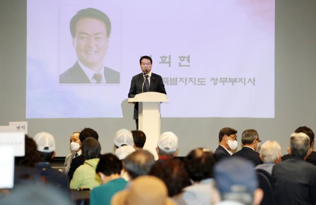 [½Ã»çÁ¾ÇսŹ® = °í¼º¹Î ±âÀÚ] ±èÈñÇö Á¦ÁÖÆ¯º°ÀÚÄ¡µµ Á¤¹«ºÎÁö»ç´Â 29ÀÏ ´ëÇѹα¹Àü¸ô±º°æÀ¯Á·È¸Á¦ÁÖÆ¯º°ÀÚÄ¡µµÁöºÎ(ÁöºÎÀå °ÀÀºÀ)°¡ ÁÖÃÖÇÑ Á¦10ȸ µ¶°Å¡¤°í·Éȸ¿ø À§·Î¿¬¿¡ Âü¼®ÇØ °í·É¡¤µ¶°Å À¯Á·È¸¿øÀÇ °Ç°À» »ìÇÇ°í °¨»ç¿Í À§·ÎÀÇ ¸¶À½À» ÀüÇß´Ù.