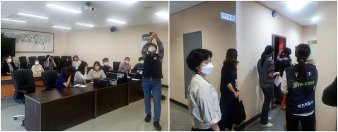 ¼øÃµ´ëÇб³ ÀαǼ¾ÅÍ¿Í ¼øÃµ°æÂû¼°¡ ÁÖÃÖÇÑ ÇÕµ¿ Á¡°Ë¿¡´Â ¼øÃµ´ëÇб³ Ãѹ«°ú Á÷¿øµéÀÌ ÇÔ²² Âü¿©Çß´Ù. ÇÕµ¿ÆÀÀº ºÒ¹ý Ä«¸Þ¶óÀÇ Á¾·ù¿Í ¼³Ä¡ ¹æ½Ä, ¿¹¹æÃ¥ µî »çÀü±³À°À» ¸¶Ä¡°í Àû¿Ü¼± ŽÁö±â 6´ë, ¹«¼± IP ŽÁö±â 3´ë¸¦ ÀÌ¿ëÇÏ¿©, ´ëÇÐ Àüü °Ç¹° 49°³ µ¿ ³²¡¤¿© ÈÀå½Ç 1,200¿© °÷°ú º¹µµ, °Ç¹° ³»ºÎ¸¦ µ¹¸ç ºÒ¹ý Ä«¸Þ¶ó ¼³Ä¡ ¿©ºÎ¸¦ È®ÀÎÇÏ¿´´Ù.