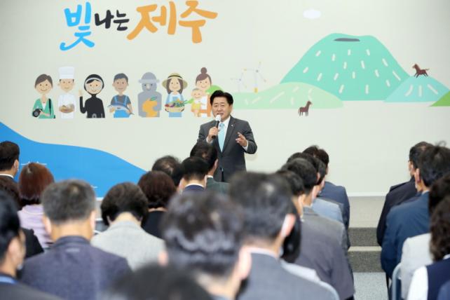 ¿À¿µÈÆ Áö»ç´Â 4ÀÏ ¿ÀÀü 8½Ã 40ºÐ Á¦ÁÖµµÃ» º»°ü 4Ãþ ޶óȦ¿¡¼ ¿¸° ¡®10¿ù ¼ÒÅë°ú °ø°¨ÀÇ ³¯¡¯¿¡¼ ¡ãÁ¦ÁÖ ¹Ì·¡»ê¾÷ Á¤Ã¥ À°¼º ¡ãµµ¹Î »ý¸í‧¾ÈÀü º¸È£ À§ÇÑ ºÎ¼ °£ Çù¾÷ °È ¡ãº¯ÈÇÏ´Â Æ®·»µå¿¡ ¹ß¸ÂÃá µµÁ¤Á¤Ã¥ ¹ß±¼ ¡ã±â¾÷Çϱâ ÁÁÀº Á¦ÁÖ ¸¸µé±â Áö¼Ó ÃßÁø ¡ã¹®È¿¹¼ú ºÐ¾ß °æÀï·Â È®º¸¸¦ À§ÇÑ °øÁ÷ÀÚµéÀÇ ¿ªÇÒÀ» ÁÖ¹®Çß´Ù.