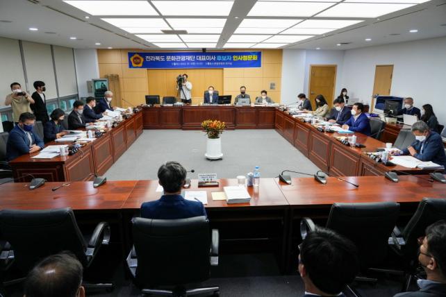 ¹®È°ü±¤Àç´Ü(2016³â 4¿ù Ãâ¹ü) ´ëÇ¥ÀÌ»ç ÀӱⰡ Áö³ 6¿ù 8ÀÏ Á¾·áµÇ¸é¼ ÀüºÏ ¹®È¿¹¼ú°è¸¦ À̲ø »õ·Î¿î ÀûÀÓÀÚ¸¦ ¼±ÀÓÇϱâ À§ÇØ ½ÃÇàµÈ À̹ø Àλçû¹®À§¿øÈ¸´Â ¼Ò°ü »óÀÓÀ§¿øÈ¸ÀÎ ¹®È°Ç¼³¾ÈÀüÀ§¿øÈ¸ À§¿ø 8¸í°ú ÀÇÀåÀÌ ÃßõÇÏ´Â À§¿ø 4¸íÀ» Æ÷ÇÔÇÏ¿© ÃÑ 12¸íÀ¸·Î ±¸¼ºµÇ¾ú´Ù.