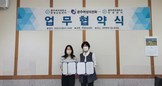 ÇÑÆí, ±è°æÀº Çлý»ó´ã¼¾ÅÍÀåÀº ¡°(»ç)±¤ÁÖ¿©¼ºÀÇÀüÈ ±¤ÁÖ¿©¼ºÀαǻó´ã¼Ò¿ÍÀÇ ¾÷¹«Çù¾àÀ» ÅëÇØ º¸´Ù È¿°úÀûÀ¸·Î ±¤ÁÖ¿©ÀÚ´ëÇб³ ÀçÇлýµéÀÇ ÀαÇÇâ»ó, ±³³» ¼ºÆòµî ¹®È Á¶¼º, ¿©¼ºÆø·Â ¿¹¹æ µîÀÇ ¾ÈÀüÄ·ÆÛ½º ½Ã½ºÅÛÀ» ±¸ÃàÇϰíÀÚ ÇÑ´Ù¡±¶ó°í ÀüÇß´Ù.