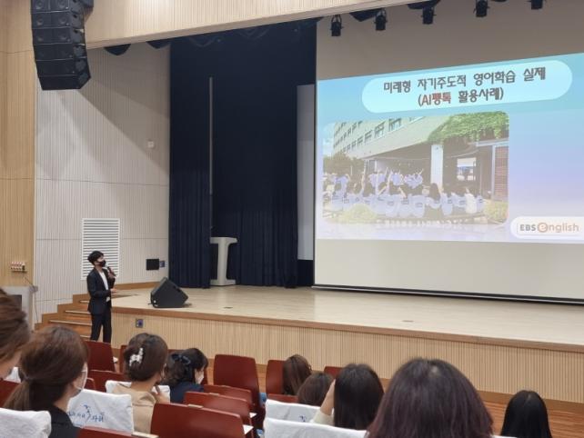 EBS âÀÇÀ¶ÇÕ±³À°ºÎ ±ÇÀº°æ °úÀåÀº¡®AI ÆëÅ塯°ú EBSe ÇнÀ ÄÜÅÙÃ÷ ¾È³»¸¦, ÀüÁÖ¸¸¼ºÃÊ ÀÓ¼®ºó ±³»ç°¡ Âü¼®ÀÚ Àü¿øÀ» ´ë»óÀ¸·Î¡®AI ÆëÅ塯½Ç½À ¹× Çб޿¡¼ ¿µ¾î ¸»Çϱ⠵è±â ±³À°¿¡ Ȱ¿ëÇÑ »ç·Ê µîÀ» °ÀÇÇß´Ù.