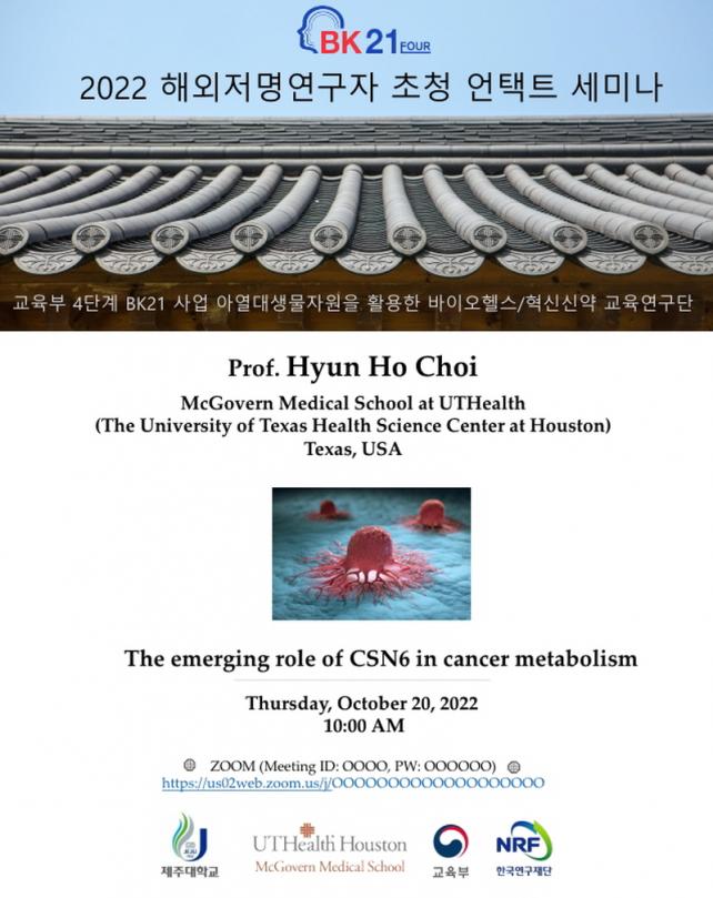 [½Ã»çÁ¾ÇսŹ® = °í¼º¹Î ±âÀÚ] Á¦ÁÖ´ëÇб³ 4´Ü°è BK(Brain Korea, µÎ³ú Çѱ¹)21 ¾Æ¿´ë»ý¹°ÀÚ¿øÀ» Ȱ¿ëÇÑ ¹ÙÀÌ¿ÀÇコ/Çõ½Å½Å¾à ±³À°¿¬±¸´Ü(´ÜÀå À̵¿¼±)Àº ¿À´Â 20ÀÏ ¿ÀÀü 11½Ã ´ëÇÐ °øµ¿½ÇÇè½Ç½À°ü 3Ãþ ¼¼¹Ì³ª½Ç¿¡¼ University of Texas Health Science Center at Houston(ÈÞ½ºÅÏ ÅØ»ç½º ÀÇ´ë) ¼Ò¼Ó ÃÖÇöÈ£ ±³¼ö¸¦ ÃÊû, °¿¬À» °³ÃÖÇÑ´Ù.