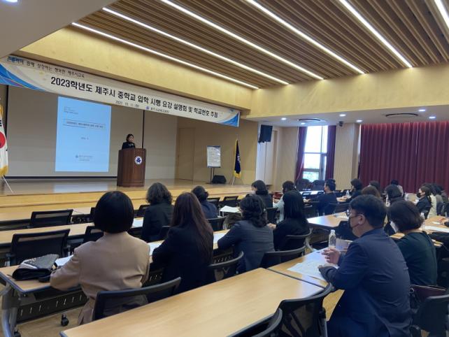 À̹ø¡®2023Çг⵵ Á¦ÁÖ½ÃÁßÇб³ ÀÔÇÐ ½ÃÇà ¿ä° ¼³¸íȸ ¹× Çб³¹øÈ£ Ãß÷¡¯Àº µ¿Áö¿ª ÁßÇб³ Àü»êÃß÷´ë»ó ÇлýÀÇ °øÁ¤ÇÑ ¹èÁ¤À» À§ÇØ ÁøÇàµÇ¾úÀ¸¸ç, ÃßÈÄ ÁøÇàµÉ ¼³¸íȸ¿¡¼´Â ½ÅÀÔ»ý ÀÔÇÐ ¿ø¼ ÀÛ¼º ¿ä·É ¹× ÁßÇб³ Àü»êÃß÷ ¹èÁ¤¿¡ °üÇÑ »çÇ× µîÀ» ¾È³»ÇÏ¿© Çб³ ÀÚü Çкθ𠼳¸íȸ ¿î¿µ°ú ÁßÇб³ ÀÔÇÐ ¾÷¹«Ã³¸®¿¡ µµ¿òÀ» ÁÙ ¿¹Á¤ÀÌ´Ù.