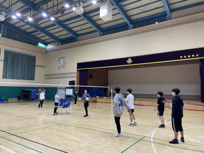 À̳¯ ȼø°ü³» ÁßÇлý 41¸íÀÌ Âü¿©ÇÏ¿© ¹è±¸, ³ó±¸, Ã౸ ÃÑ 3Á¾¸ñÀÇ ÄÚα³À°À» ¹Þ¾ÒÀ¸¸ç °¢ Á¾¸ñº° ±â¼ú ¿ä·É¿¡ ´ëÇØ ¹è¿ü´Ù.