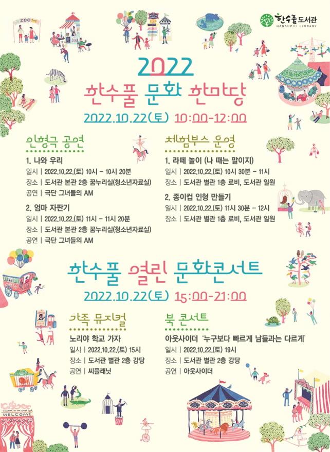 10¿ù 22ÀÏ(Åä) 10½ÃºÎÅÍ ÇѼöÇ®µµ¼°ü ÀÏ´ë¿¡¼ ÀÎÇü±Ø¡®³ª¿Í ¿ì¸®, ¾ö¸¶À򮂱â(±×³àµéÀÇ AM)¡¯°ø¿¬°ú ÀÎÇü±Ø ¿¬°è üÇèÇà»ç, ¾î¸°ÀÌ ¹ÂÁöÄ᮳븮¾ß Çб³°¡ÀÚ(¾¾Ç÷¡´Ö)¡¯, ¾Æ¿ô»çÀÌ´õ ºÏÄܼƮ ¹× ³ë·¡°ø¿¬ µî ´Ùä·Î¿î ¹«´ë°¡ ÆîÃÄÁú ¿¹Á¤ÀÌ´Ù.