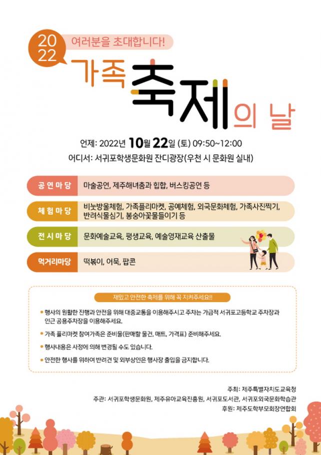 ÀÌ Çà»ç´Â¡®°¡Á·°ú ÇÔ²² ¹Ì·¡ ȯ°æÀ» À̾߱âÇÏ´Ù!¡¯¶ó´Â ÁÖÁ¦·Î ¼±ÍÆ÷Çлý¹®È¿ø, Á¦ÁÖÀ¯¾Æ±³À°ÁøÈï¿ø, ¼±ÍÆ÷µµ¼°ü, ¼±ÍÆ÷¿Ü±¹¹®ÈÇнÀ°ü ÀÌ»ó 4°³ ±â°üÀÌ °øµ¿À¸·Î ÁÖ°üÇϸç, Á¦ÁÖÆ¯º°ÀÚÄ¡µµÇкθðȸÀ忬ÇÕȸÀÇ ÈÄ¿øÀ¸·Î ´©±¸³ª »çÀü ½Åû ¾øÀÌ ÇöÀåÀ¸·Î ¿À¸é Âü°¡ÇÒ ¼ö ÀÖ´Ù.