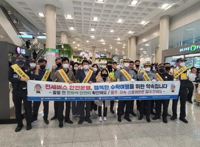 À̹ø Ä·ÆäÀο¡´Â Á¦ÁÖÀÚÄ¡°æÂû´Ü, Á¦ÁÖ°æÂûû, ¼ºÎ°æÂû¼, Á¦ÁÖµµÃ», Á¦ÁÖ±³À°Ã», Çѱ¹±³Åë¾ÈÀü°ø´Ü Á¦ÁÖº»ºÎ, Çѱ¹°øÇ×°ø»ç Á¦ÁÖÁö¿ªº»ºÎ, Á¦ÁÖÀü¼¼¹ö½º ¿î¼Û»ç¾÷Á¶ÇÕ µî ÃÑ 8°³ ±â°üÀÌ Çù·ÂÇß´Ù. ´ëÇü¹ö½º ¿îÀü±â»ç ¹× ¼öÇп©Çà´ÜÀ» ´ë»óÀ¸·Î Àü´ÜÁö¿Í È«º¸ ¹°Ç° µîÀ» ¹èºÎÇßÀ¸¸ç, Àü Á¼® ¾ÈÀü¶ì Âø¿ë, ¿îÇà Áß À̵¿±ÝÁö, À½ÁÖ¿îÀü ±ÝÁö, °ú¼Ó ±ÝÁö, ¾ÈÀü°Å¸® È®º¸ µî ¾È½É¼öÇп©Çà ¾ÈÀü¼öÄ¢ ³»¿ëÀ» ÀüÆÄÇß´Ù.