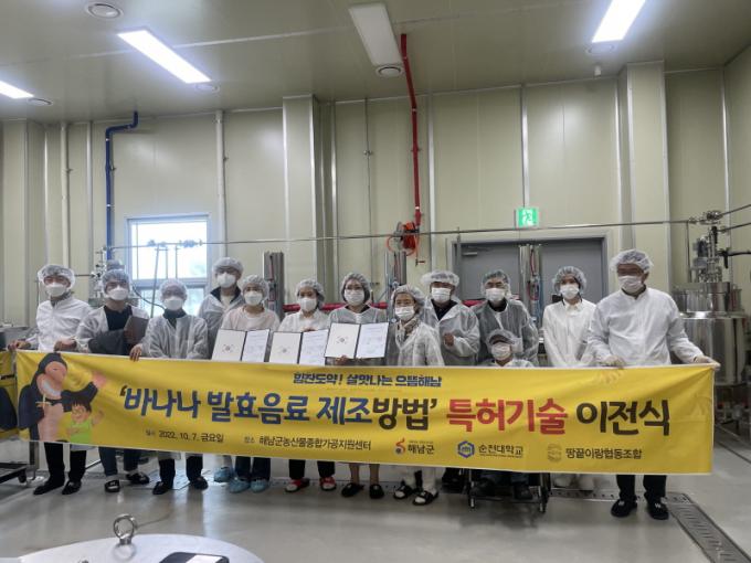 ¼øÃµ´ë¿¡¼ ÀÌÀüÇÑ ¡®¹Ù³ª³ª ÇÁ·Î¹ÙÀÌ¿Àƽ À½·á °³¹ß ±â¼ú¡¯Àº ±¹³» »ý»ê ¾Æ¿´ë ÀÛ¹°ÀÇ È°¿ëÀ» Áõ°¡½ÃŰ°í ºÎ°¡°¡Ä¡°¡ ³ôÀº °¡°øÀ½·á·Î °³¹ßÇÏ¿© ±¹³» ¹Ù³ª³ª »ý»ê ³ó°¡ÀÇ ÀÌÀÍÀ» âÃâÇÒ ¼ö ÀÖ´Â ±â¼úÀÌ´Ù. ¶ÇÇÑ ÇØ³²±º ³ó»ê¹° °¡°øÁö¿ø ¼¾ÅÍ¿¡ ±â¼úÀÌÀüÀ» ÅëÇÏ¿© ÇØ³²±º »ý»ê ³ó°¡µéÀÌ Æ¯Çã ±â¼úÀ» Ȱ¿ëÇÒ ¼ö ÀÖ´Â ±âƲÀ» ¸¶·ÃÇÏ¿´´Ù.