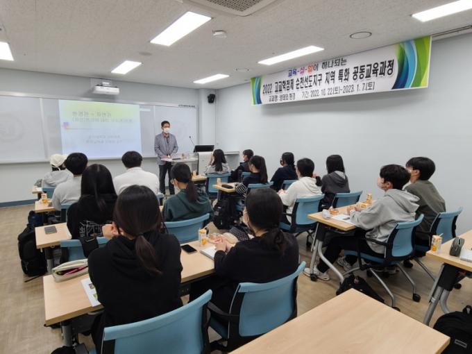 À̹ø ¿î¿µµÇ´Â °øµ¿±³À°°úÁ¤Àº ¼øÃµÁ¦ÀϰíµîÇб³¸¦ °ÅÁ¡Çб³·Î ÇÏ¿© °í2 Çлý 20¸íÀÌ ¼ö¾÷¿¡ Âü¿©ÇÑ´Ù. ¼øÃµ´ëÇб³ ȯ°æ±³À°°ú ±³¼ö¸¦ Áß½ÉÀ¸·Î ¼øÃµ¸¸»ýŹ®È±³À°¿ø °»ç µîÀÌ ¼ö¾÷À» ÁøÇàÇϸç, ÁÖ¸»°ú °Ü¿ï¹æÇÐÀ» Ȱ¿ëÇØ ÃÑ 34½Ã°£(2´ÜÀ§)·Î ¿î¿µµÈ´Ù. ±³°ú ¸ñÇ¥ µµ´ÞÀ» À§ÇÑ ±âº» ÀÌ·Ð ¼ö¾÷»Ó¸¸ ¾Æ´Ï¶ó, ÇöÀå üÇèÇнÀ, ÅäÀÇ¡¤Åä·Ð, ½ÇÇ衤½Ç½À, ÁÖÁ¦ Á᫐ ÇÁ·ÎÁ§Æ® µî ´Ù¾çÇÑ Çлý Âü¿©Çü ¼ö¾÷ÀÌ ÀÌ·ïÁú ¿¹Á¤ÀÌ´Ù. À̹ø °øµ¿±³À°°úÁ¤ ¿î¿µ °á°ú¸¦ ¹ÙÅÁÀ¸·Î 2023³â »ó¹Ý±â °í½Ã ¿Ü °ú¸ñ(°¡Äª: ±âÈÄ º¯È¿Í ¿¬¾È ½ÀÁö) ¹× ÀÎÁ¤µµ¼ °³¹ß¡¤½ÂÀÎ ÀýÂ÷¸¦ ¹â¾Æ°¥ °èȹÀÌ´Ù.