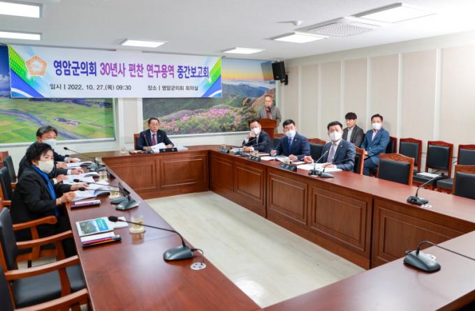 ±ºÀÇȸ ȸÀǽǿ¡¼ ¿¸° Áß°£º¸°íȸ¿¡´Â °Âù¿ø ÀÇÀåÀ» ºñ·ÔÇÑ ±ºÀÇ¿ø°ú ÀÇȸ °ü°è°ø¹«¿ø, ¿¬±¸¿ë¿ª»ç °ü°èÀÚ µî 20¿©¸íÀÌ Âü¼®Çß´Ù. À̳¯ º¸°íȸ´Â °Âù¿ø ÀÇÀå Àλ縻¾¸°ú ¿¬±¸¿ë¿ªÆÀÀÇ ±×µ¿¾È ÁøÇà»çÇ×°ú Ç¥Áö¡¤³»Áö µðÀÚÀÎ ½Ã¾È µî 30³â»ç ¼¼ºÎ ±¸¼º¾È ¼Ò°³¿Í ÀÇÁ¤È°µ¿¡¤±âȹ Å׸¶ ¸ñÂ÷¿Í ¼ö·Ï ³»¿ë µîÀ» °ø°³ÇÏ¿© ÁúÀÇ ÀÀ´äÀ» ÅëÇØ ´Ù¾çÇÑ ÀǰßÀ» ¼ö·ÅÇß´Ù.
