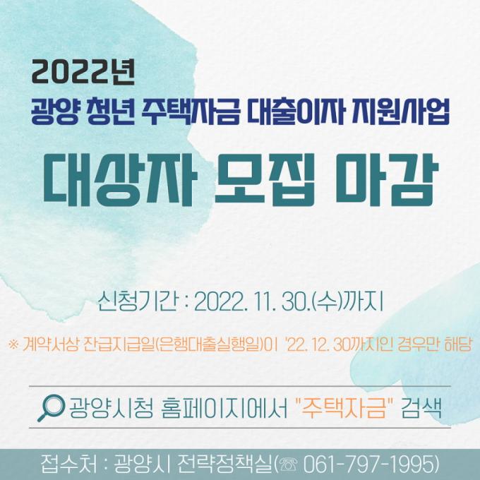 ¡®Ã»³â ÁÖÅÃÀÚ±Ý ´ëÃâÀÌÀÚ Áö¿ø»ç¾÷¡¯°ú °ü·ÃµÈ ÀÚ¼¼ÇÑ »çÇ×À̳ª °ü·Ã ¼·ù´Â ±¤¾ç½Ã ȨÆäÀÌÁö(gwangyang.go.kr) °ø°í¶õ¿¡¼ È®ÀÎÇÒ ¼ö ÀÖÀ¸¸ç, ¹®ÀÇ´Â Àü·«Á¤Ã¥½Ç(¢Ï061-797-1995)·Î ÇÏ¸é µÈ´Ù.