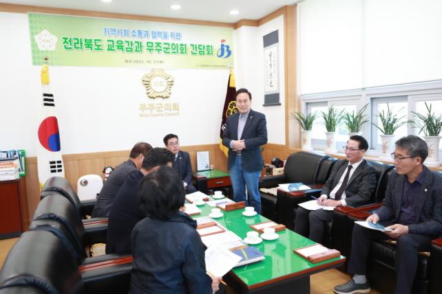¼°Å¼® ±³À°°¨Àº 27ÀÏ ¹«ÁÖ±ºÀÇȸ(ÀÇÀå ÀÌÇØ¾ç)¸¦ ¹æ¹®ÇØ ¿À±¤¼® ºÎÀÇÀå µî 5¸íÀÇ ÀÇ¿øµé°ú Áö¿ª ±³À°Çö¾ÈÀ» ³íÀÇÇß´Ù. ÀÇ¿øµéÀº ³óÃÌÁö¿ªÀÇ ¿¾ÇÇÑ ±³À°È¯°æÀ» ¾ð±ÞÇÏ¸ç µµ±³À°Ã»ÀÇ ÀüÆøÀûÀÎ °ü½É°ú Áö¿øÀ» ¿äûÇß´Ù.