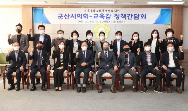 ¼°Å¼® ±³À°°¨Àº À̳¯ ±º»ê½ÃÀÇȸ ¼ÒȸÀǽǿ¡¼ ¹Ú°æÈñ ±º»ê±³À°ÀåÀÌ Âü¼®ÇÑ °¡¿îµ¥ Á¤Ã¥°£´ãȸ¸¦ ¿¾î Çб³ ½Ã¼³ °³¹æ µî ´Ù¾çÇÑ Çö¾ÈÀ» ³õ°í Çã½ÉźȸÇÏ°Ô ÀǰßÀ» ÁÖ°í¹Þ¾Ò´Ù.