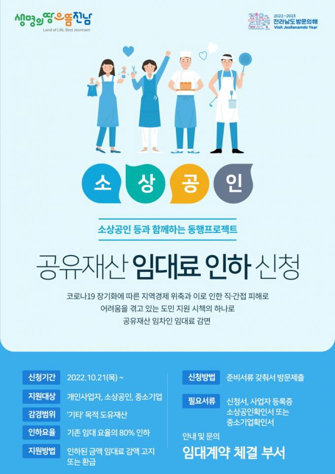 ±â°£Àº ¿À´Â 12¿ù±îÁö·Î ÀÓ´ë·á¸¦ ÃÖ´ë 80% °¨°æÇÏ°í ¿µ¾÷Àå Æó¼â¿Í ÈÞ¾÷ µîÀ¸·Î °¨°æ ±â°£¿¡ ÇØ´çµÇ´Â ±â°£ Áß °øÀ¯Àç»êÀ» »ç¿ëÇÏÁö ¸øÇÑ °æ¿ì »ç¿ë․´ëºÎ ±â°£À» ¿¬ÀåÇÒ ¼ö ÀÖ´Ù. ¶Ç ÀÓ´ë·á¸¦ ÀÌ¹Ì ³³ºÎÇÑ ¼Ò»ó°øÀο¡°Ô´Â ½ÅûÀ» ¹Þ¾Æ ÀÎÇÏÇÑ ±Ý¾×¸¸Å ȯ±ÞÇØÁÙ °èȹÀÌ´Ù.