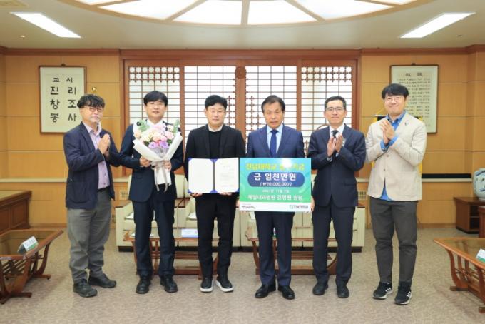 À̳¯ ¹ßÀü±â±Ý Àü´Þ½Ä¿¡´Â ±è¸í¿ø º´¿øÀå°ú ÀýÄ£ÇÑ »çÀÌÀÎ ±è¹Î¼ö ÀÚ¿¬°úÇдëÇÐÀåÀÌ Âü¼®Çß´Ù.