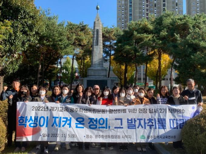 6ÀÏ ±¤ÁÖ±³À°¿¬¼ö¿ø¿¡ µû¸£¸é Á¦93ÁÖ³â Çлýµ¶¸³¿îµ¿ ±â³äÀÏÀ» ¸Â¾Æ ±¤ÁÖÇлýµ¶¸³¿îµ¿ÀÇ Áø¿øÁöÀÎ ³ªÁÖ¿ª µî »çÀûÁö ޹æÀ» ÅëÇÑ »ýµ¿°¨ ÀÖ°í ÇöÀå°¨ ÀÖ´Â ¿¬¼ö¸¦ ½Ç½ÃÇß´Ù. ƯÈ÷ ±¤ÁÖÇлýµ¶¸³¿îµ¿À» µÇ»õ°Üº¸°í ÇлýµéÀÇ ¹ÎÁֽùÎÀǽÄ, °øµ¿Ã¼¼º µî ÇÙ½É ¿ª·®À» ±æ·¯ÁÖ´Â ±³¿ø ¼ö¾÷¿ª·®À» Ű¿ì°íÀÚ ±âȹµÆ´Ù.