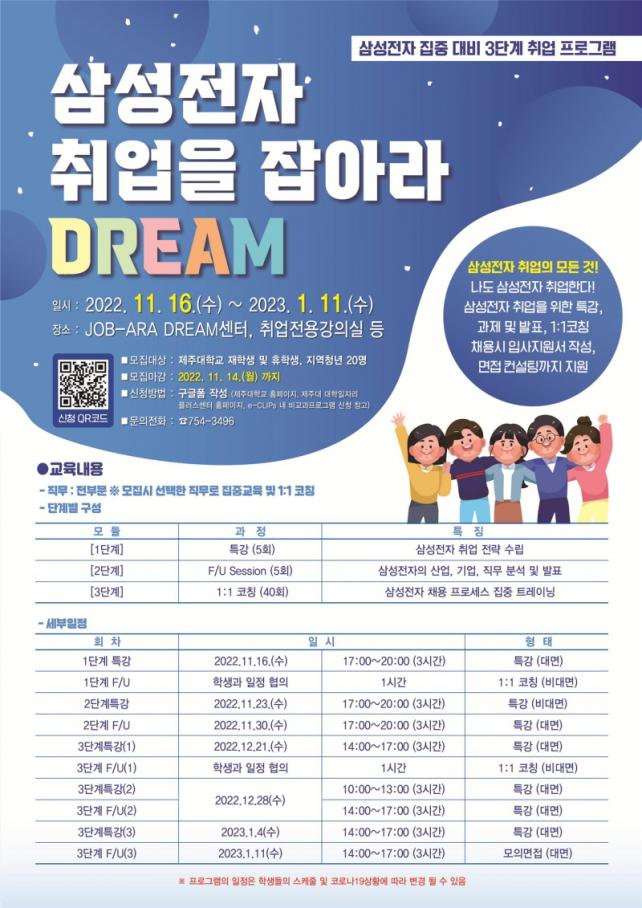 ±³À° ³»¿ëÀº »ï¼ºÀüÀÚ Ãë¾÷ Àü·« ¼ö¸³ Ư°, ÇлýµéÀÌ Á÷Á¢ Âü¿©ÇØ »ê¾÷, ±â¾÷, Á÷¹«¸¦ ºÐ¼®ÇÏ°í ¹ßÇ¥ÇÒ ¼ö ÀÖ´Â F/U ¼¼¼Ç, 1:1 ÄÚĪ µî 3´Ü°è·Î ±¸¼ºµÈ´Ù.