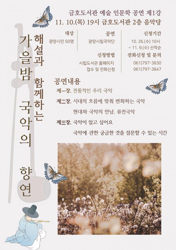 ¡®°¡À»¹ã ±¹¾ÇÀÇ Ç⿬¡¯Àº <±¤¾ç½Ã¸³±¹¾Ç´ÜÀÌ ÀüÇÏ´Â ¡°±¹¾ÇÀÌ ¾Ë°í ½Í¾î¿ä!¡±>¸¦ ÁÖÁ¦·Î °Á¾È ÁöÈÖÀÚÀÇ ÇØ¼³°ú ÇÔ²²ÇÏ´Â ±¹¾Ç´Ü °ø¿¬ÀÌ, ½Ã¹Î°ú °¡±î¿î °÷¿¡¼ ¼ÒÅëÇÒ ¼ö ÀÖ´Â °ø°£¿¡¼ ÁøÇàµÈ´Ù.