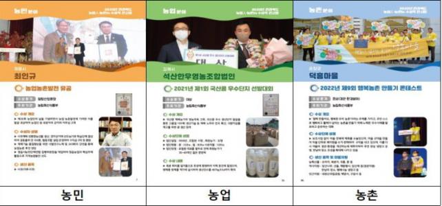 ģȯ°æ »ç°ú Àç¹è¡¤»ý»ê ¹× ÀüÀÚ»ó°Å·¡ ¼±µµ ³ó°¡·Î ÇнÀ´Üü¸¦ °á¼ºÇØ ¿¬ 100ÅæÀ» °øµ¿ÃâÇÏÇϰí, Çùµ¿Á¶ÇÕÀ» ¼³¸³ÇØ 5¾ï ¿øÀÇ ¼öÀͱÝÀ» ȯ¿øÇÑ °ø·Î·Î öž»ê¾÷ÈÆÀåÀ» ¹ÞÀº ÃÖÀαԾ¾, ¿ì¼öÇÑ ÀüÅë Á£°¥¹ßÈ¿À½½ÄÀ¸·Î Á¦4ȸ ´ë¸¸¹Î±¹ Àå·ù ¹ßÈ¿´ëÀü¿¡¼ ´ë»óÀ» ¼ö»óÇÑ ÀÌ»ó¾Ö¾¾¸¦ ºñ·ÔÇØ ´Ùä·Î¿î ¼ö»óÀÛµéÀÌ Àü½ÃµÆ´Ù.