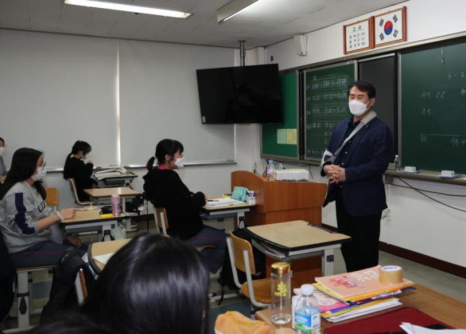 [½Ã»çÁ¾ÇսŹ® = ¿À½ÂÅà ±âÀÚ] ÀÌÁ¤¼± ±³À°°¨Àº 9ÀÏ ¼ö´É ¸¶¹«¸®¿¡ ¹ÚÂ÷¸¦ °¡Çϰí ÀÖ´Â ¼öÇè»ýµéÀ» °Ý·ÁÇϱâ À§ÇØ ¼³¿ù¿©ÀÚ°íµîÇб³¸¦ ¹æ¹®Çß´Ù.