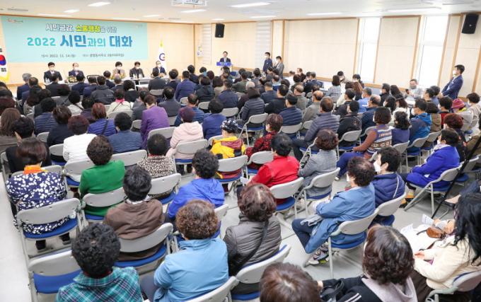 Äڷγª19 ÀÌÈÄ 3³â ¸¸¿¡ °³ÃÖµÈ ½Ã¹Î°úÀÇ ´ëÈ´Â ¹Î¼± 8±â ½ÃÁ¤¹æÇâ º¸°í, À¾¸éµ¿ ÁÖ¿ä »ç¾÷ ¼³¸í, °ÇÀÇ»çÇ× ¼ö·Å°ú ´äº¯, °æ·Î´ç ¹æ¹® ¼ø¼·Î ÁøÇàµÆ´Ù. µµ¡¤½ÃÀÇ¿øÀ» ºñ·ÔÇÑ ±â°ü¡¤´Üü´ëÇ¥, Áö¿ªÁֹΠµî 1,100¿© ¸íÀÌ Âü¼®ÇØ Áö¿ª¹ßÀüÀ» À§ÇÑ ´Ù¾çÇÑ ÀǰßÀ» Á¦½ÃÇÏ°í »õ·Î¿î ¹æÇâ¸ð»öÀ» À§ÇÑ Àû±ØÀûÀ̰í Ȱ±â ³ÑÄ¡´Â ´ëÈÀÇ ½Ã°£À» °¡Á³´Ù.