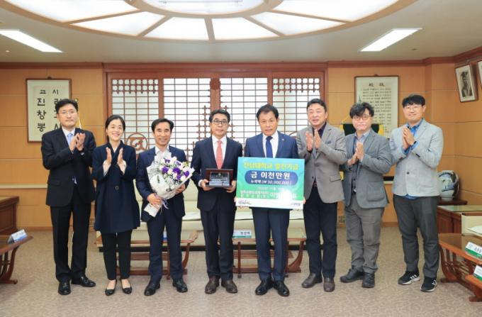 ÀÌ¿µÈÆ ´ëÇ¥ÀÌ»ç´Â 11¿ù 16ÀÏ Àü³²´ë¿¡ ¹ßÀü±â±ÝÀ» Àü´ÞÇÑ µÚ, ¡°»çȸÀûÀ¸·Î Èûµç ½Ã±âÀÎ ¸¸Å ƯÈ÷ °æÁ¦ÀûÀÎ ¾î·Á¿òÀ» °Þ´Â Çлýµé¿¡°Ô Á¶±ÝÀ̳ª¸¶ º¸ÅÆÀÌ µÇ°íÀÚ ±âºÎ¿¡ ³ª¼¹´Ù.¡±¸ç ¡°¾ÕÀ¸·Îµµ ¿ì¼öÇÑ Áö¿ª ÀÎÀç ¾ç¼ºÀ» À§ÇØ Áö¼ÓÀûÀ¸·Î Áö¿øÇÒ °ÍÀ̸ç, ±â¾÷ ÀÌÀ±À» »çȸ¿¡ ȯ¿øÇØ »çȸ ±¸¼º¿ø°ú ÇÔ²² ÇÏ´Â ±â¾÷ÀÌ µÉ °Í¡±À̶ó°í ¸»Çß´Ù.