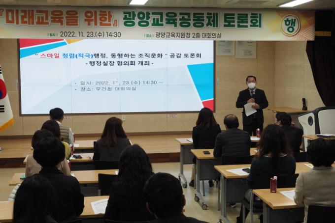 ·¡±³À° ´ëÀüȯ°ú Çб³ÇöÀåÀÇ ¿ª·® ¹× Àü¹®¼º Çâ»óÀ» À§ÇÑ ¿ì¼ö»ç·Ê °øÀ¯ ¹× °³¼±¹æ¾È µî¿¡ ´ëÇØ ¿¶í Åä·ÐÀ» ÆîÃÆÀ¸¸ç, À̳¯ Âü¼®ÇÑ ÇàÁ¤½ÇÀåÀº ¡°Ã»·Å(Àû±ØÇàÁ¤) ½Çõ ¹× Á¶Á÷¹®È °³¼±ÀÇ Ã¹ ´ÜÃß´Â ³ª¿Í ÀÌ¿ôÀÇ ºÒÆíÇÔÀ» ÇØ¼ÒÇÏ·Á´Â ÀÛÀº °ü½É¿¡¼ºÎÅÍ ½ÃÀÛÇÑ´Ù.¡±¶ó¸ç, ¡°ÇàÁ¤¾÷¹«ÀÇ °³¼±»çÇ×ÀÌ ÀÖ´ÂÁö ´Ù½Ã Çѹø »ý°¢ÇÒ ¼ö ÀÖ´Â ÁÁÀº ½Ã°£À̾ú´Ù.¡±¶ó°í ¸»Çß´Ù.