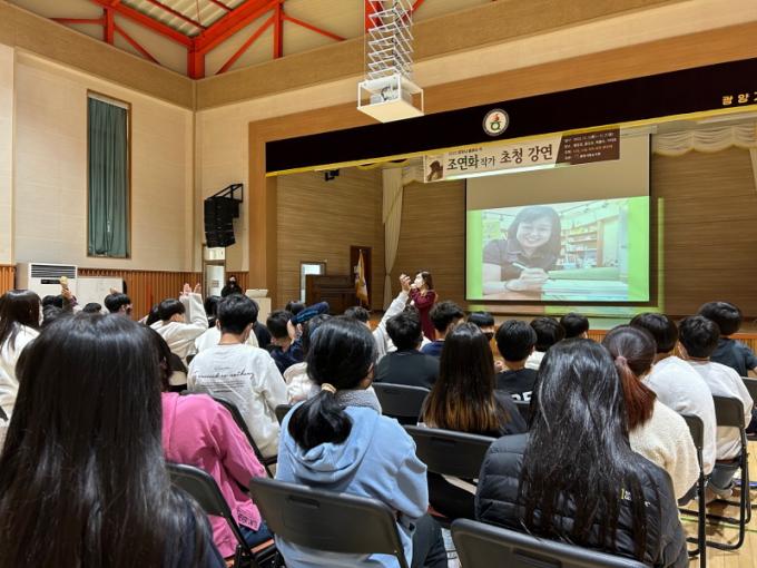 À̹ø Çб³ ¹æ¹®¿¡¼ ¡¸³» À̸§À» µé·ÁÁÙ°Ô¡¹¸¦ ¹Ì¸® ÀÐ°í ±³½Ç º®¸é¿¡ »©°îÇÏ°Ô µ¶ÈÄȰµ¿Áö¸¦ ºÙ¿©µÐ ±³½Çµµ ÀÖ¾ú°í, °¿¬ Áß ÀÛ°¡°¡ ³»´Â µ¶¼ÄûÁ ¸ÂÈù ¾î¸°À̵éÀº ÀÛ°¡ÀÇ »çÀÎÀ» ¹Þ°í ȯȣÇϱ⵵ Çß´Ù. Á¶¿¬È ÀÛ°¡´Â Á÷Á¢ ÂïÀº »çÁø°ú ÀÚ·áµéÀ» º¸¿©ÁÖ¸ç ÀÏ»óÀÇ °æÇèÀÌ ¾î¶»°Ô ÇÑ ÆíÀÇ µ¿È·Î ź»ýÇß´ÂÁö ¼³¸íÇÏ°í ¡°¸ðµç °æÇèÀ» ¼ÒÁßÈ÷ ¿©±â¸é Å« »ç¶÷ÀÌ µÈ´Ù¡±°í ÀüÇß´Ù. ´õºÒ¾î ¡°¹«¾ð°¡¸¦ À§ÇØ ¸ðµç °É ¹ÙÄ¡´Ù º¸¸é ±×°Ô °¡Àå ¼ÒÁßÇØÁø´Ü´Ù¡±´Â µ¿È ¼Ó °´º ÇҾƹöÁöÀÇ ¸»À» ÀοëÇÏ¸ç ¾î¸°À̵éÀÌ ²ÞÀ» À§ÇØ ÇöÀç ¹«¾ù¿¡ ½Ã°£°ú ³ë·ÂÀ» ¹ÙÄ¡´ÂÁö µ¹¾Æº¸°Ô Çß´Ù.