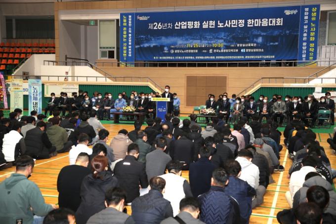 ¸Å³â °³È¸½Ä Çà»ç¸¦ ÅëÇØ ³ë»ç¹ÎÁ¤ °£ Çù·Â ÁõÁø, ÈÇÕ À¯µµ, Áö¿ª°æÁ¦ Ȱ¼ºÈ¸¦ À§ÇØ ¡®»ê¾÷ÆòÈ °øµ¿¼±¾ð¡¯À» äÅÃÇÏ¸ç ³ë»ç¹ÎÁ¤ °øµ¿ »ê¾÷ÆòÈ ½ÇÇöÀ» ÅëÇÑ »óÈ£µ¿¹ÝÀÚ °ü°è¸¦ Á¤¸³Çϰí, ³ëµ¿ Çö¾ÈÀÌ ¹ß»ýÇÒ °æ¿ì ´ëÈ¿Í »óÈ£ ¾çº¸¸¦ ÅëÇØ ÇØ°áÇϸç Áö¿ª°æÁ¦ Ȱ¼ºÈ¸¦ À§ÇØ Çù·ÂÇÒ °ÍÀ» °áÀÇÇß´Ù. Á¤ÀÎÈ ±¤¾ç½ÃÀåÀº °Ý·Á»ç¸¦ ÅëÇØ ¡°±Þº¯ÇÏ´Â ¼¼°è °æÁ¦ ¼Ó »ê¾÷´ëÀüȯ°ú ¿¡³ÊÁö ´ëÀüȯÀÇ ±æ¸ñ¿¡¼ ÀÌÂ÷ÀüÁö ¹× ¼ö¼Ò»ê¾÷ °æÁ¦µµ½Ã¸¦ Ãß±¸Çϱâ À§ÇØ º¯È¸¦ ¸ð»öÇϰí ÀÖ´Ù¡±°í ¸»Çß´Ù.