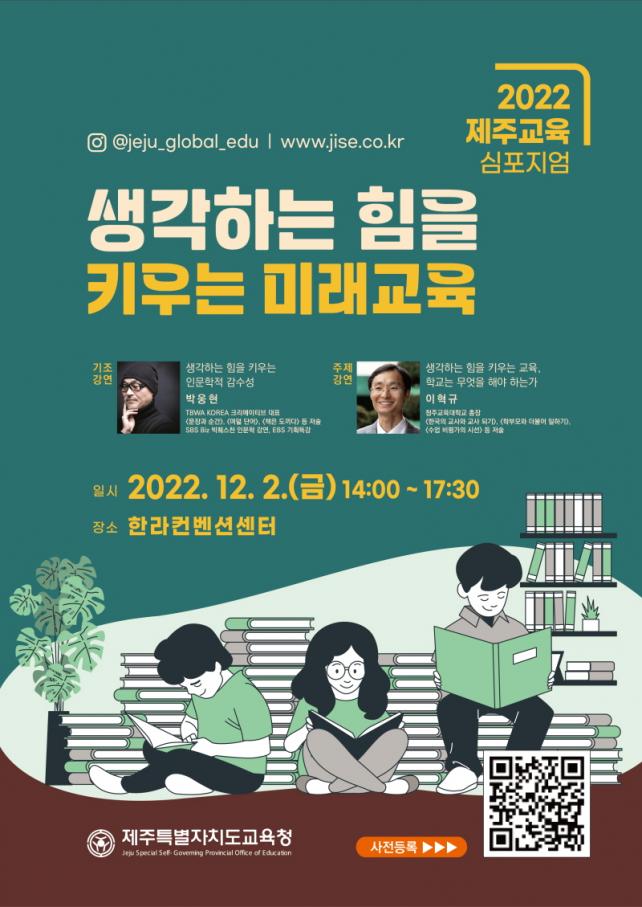 ±³À°ÀÇ ÆÐ·¯´ÙÀÓ º¯È¸¦ °øÀ¯Çϰí Á¦ÁÖ±³À° ¹ßÀü ¹æ¾ÈÀ» ¸ð»öÇϱâ À§ÇØ ¿¸®´Â À̹ø ½ÉÆ÷Áö¾öÀº Á¦ÁÖ±³À°°¡Á·, À¯°ü´Üü ±³À°°ü°èÀÚ, Á¦ÁÖµµ¹Î, Ÿ½Ã⋅µµ ±³À°Ã» °ü°èÀÚ µîÀÇ Âü¼®ÀÚ°¡ ÇÔ²²ÇÏ´Â ´ë¸é Çà»ç·Î ÁøÇàµÈ´Ù. ¿ÃÇØ ½ÉÆ÷Áö¾öÀº Á¦ÁÖ±³À° ÁöÇ¥ÀΡ®»ý°¢ÇÏ´Â ÈûÀ» Ű¿ì´Â ¹Ì·¡±³À°¡¯À» ÁÖÁ¦·Î ±âÁ¶°¿¬°ú Åä·Ð µîÀÌ ÀÌ·ïÁ® ±³À°ÁöÇ¥¸¦ °øÀ¯ÇÏ´Â ÀåÀÌ ¸¶·ÃµÈ´Ù. ±âÁ¶°¿¬Àº ¡¸Ã¥Àº µµ³¢´Ù¡¹, ¡¸¿©´ü ´Ü¾î¡¹ µîÀÇ ÀúÀÚÀ̸ç, Àι®ÇÐ °µ¶È¸·Î À¯¸íÇÑ ¹Ú¿õÇö TBWA KOREA Á¶Á÷¹®È¿¬±¸¼ÒÀåÀÌ ¸Ã¾Æ ¡®»ý°¢ÇÏ´Â ÈûÀ» Ű¿ì´Â Àι®ÇÐÀû °¨¼ö¼º¡¯À» ÁÖÁ¦·Î °¿¬ÇÑ´Ù. À̾»ý°¢ÇÏ´Â ÈûÀ» Ű¿ì´Â ±³À°, Çб³´Â ¹«¾ùÀ» ÇØ¾ß Çϴ°¡¡¯¸¦ ÁÖÁ¦·Î °¿¬°ú Åä·ÐÀÌ ÁøÇàµÈ´Ù. ¡¸Çѱ¹ÀÇ ±³»ç¿Í ±³»ç µÇ±â¡¹, ¡¸¼ö¾÷ ºñÆò°¡ÀÇ ½Ã¼±¡¹ µîÀÇ ÀúÀÚÀ̸ç, Çѱ¹ ±³À° »ýŰèÀÇ º¯È¸¦ À§ÇÑ ¿¬±¸¿Í ½Çõ¿¡ ¾ÕÀå¼ ¿Â ÀÌÇõ±Ô ûÁÖ±³À°´ëÇб³ ÃÑÀåÀÌ ÁÖÁ¦°¿¬À» ÇÑ´Ù.