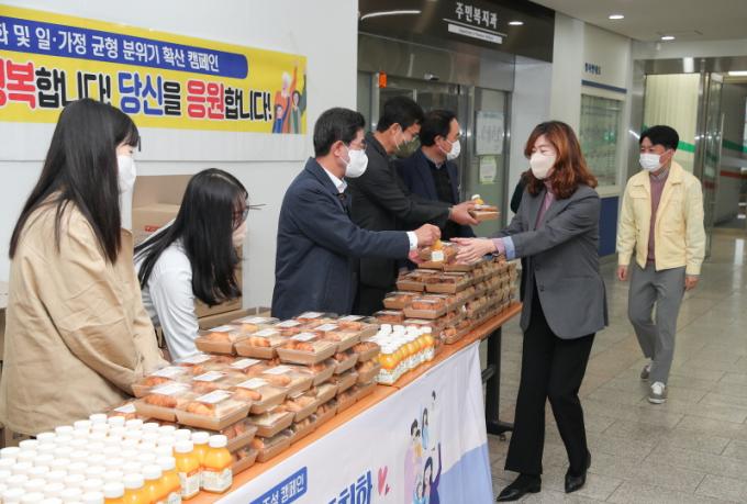 °¡Á·Ä£È Áö¿ø»ç¾÷Àº ÀÏ¡¤°¡Á¤ ¾ç¸³ Á¦µµ¿¡ ´ëÇÑ ´Ù¾çÇÑ »ç¾÷, ÄÁ¼³ÆÃ, Á¤º¸ Á¦°ø, È«º¸ µîÀ» ÅëÇØ ±Ù·ÎÀÚ°¡ Àϰú °¡Á¤»ýȰÀ» Á¶È·Ó°Ô º´ÇàÇÒ ¼ö ÀÖµµ·Ï Áö¿øÇÏ´Â »ç¾÷ÀÌ´Ù. ƯÈ÷, Äڷγª19 °ü·Ã ¾÷¹«·Î Àå±â°£ ÇǷΰ¡ ½×¿© ¿Â Á÷¿øµéÀ» À§ÇØ È«º¸¹°Ç°ÀÎ »÷µåÀ§Ä¡¿Í À½·á¸¦ Àü´ÞÇØ ¸¹Àº È£ÀÀÀ» ¾ò¾ú´Ù.