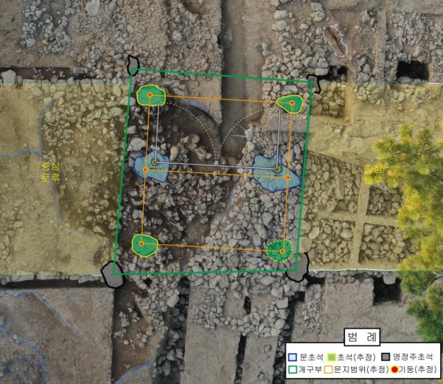 Á¶»ç°á°ú, ¹®È®¼®Àº µ¿-¼ ¹æÇâÀ¸·Î ÃÑ 2¸Å°¡ ¹èÄ¡µÆ°í ¹®È®¼® »óºÎ¿¡´Â ȨÀ» ÆÄ¼ È®¼è¸¦ °íÁ¤ÇÑ °ÍÀ» È®ÀÎÇß´Ù. È®¼è °£ ÃßÁ¤°Å¸®´Â 326§¯·Î, È®¼è¿¡¼ ³²ÂÊÀ¸·Î ÀÎÁ¢ÇØ ¹®¼³ÁÖ È¨°ú ¹®Åεµ Ãß°¡·Î È®ÀÎÇß´Ù. ¹®ÅÎÀº È®¼è¿Í ¹®¼³ÁÖ È¨ »çÀÌ¿¡ µ¿-¼ ¹æÇâÀ¸·Î ¾è°Ô Á¶¼ºÇÑ ±¸Á¶·Î º¸¾Æ ¹®À» ³»ÃøÀ¸·Î ¿°í ´Ý´Â ³»°³Çü ±¸Á¶ÀÇ ¹®ÀÌ ÃàÁ¶µÈ °ÍÀ¸·Î ÃßÁ¤µÈ´Ù. ¼º³» µµ·Î¸Á°ú ¿¬°áµÈ ³»¿ÜÃø º¸µµ½Ã¼³¿¡¼ ûÀÚ µÎħ(Ôéö×, º£°³)À» ºñ·ÔÇÑ Á¢½Ã, ´ëÁ¢ µîÀÇ Ã»ÀÚ·ù ÆÄÆí°ú ÇÔ²² öÁ¤(ôÑïù, ¼è¸ø) 5Á¡ÀÇ À¯¹°µµ ÃâÅ䵯´Ù. 3ÀÏ ÇмúÀÚ¹®È¸ÀǸ¦ ÅëÇØ Áö±Ý±îÁö ÁøÇàµÈ ¹ß±¼¼º°ú¸¦ ½Éµµ ÀÖ°Ô ³íÀÇÇÏ´Â ÇÑÆí, ÇâÈÄ ÇØ´ç À¯ÀûÀÇ º¸Á¸ ․ Á¤ºñ ¹æÇ⠵ ´ëÇÑ ÀÚ¹®µµ ±¸ÇÒ ¿¹Á¤ÀÌ´Ù.