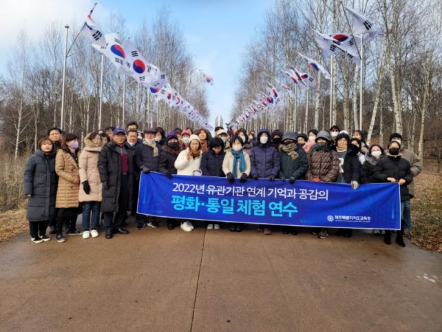 Á¦ÁÖµµ±³À°Ã» °ü°èÀڴ¡°À̹ø ³²ºÏ±³·ù ¹× ÆòÈ­Çù·Â ±â°ü ¾÷¹« ´ã´çÀÚ ¹× ÅëÀϱ³À°´ã´ç ±³»ç ÆòÈ­¡¤ÅëÀÏ Ã¼Ç迬¼ö¸¦ ÅëÇØ Çб³ ÅëÀϱ³À°¿¡ ´ëÇÑ ±³·ù ¹× Àü¹®¼ºÀÌ °­È­µÇ¾î ¹Ì·¡ ÅëÀÏ ¼¼´ëÀÇ ÅëÀÏ ¿ª·®ÀÌ ÇÔ¾çµÇ´Â Åä´ë°¡ µÇ±â¸¦ ±â´ëÇÏ¸ç ¾ÕÀ¸·Î Áö¿ª»çȸ¿Í ¿¬´ëÇÏ¿© Çб³ ÅëÀϱ³À° Ȱ¼ºÈ­¸¦ À§ÇØ ³ë·ÂÇϰڴ١±°í ¹àÇû´Ù.