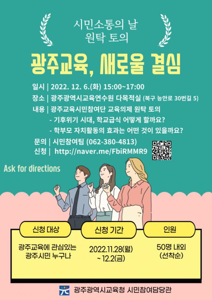 ÇÑÆí, ±¤Áֽñ³À°Ã»Àº ÇöÀå°ú ¼ÒÅëÇÏ°í ½Ã¹ÎµéÀÇ ÀǰßÀ» °æÃ»ÇϰíÀÚ ¸Å³â µÎ Â÷·Ê ½Ã¹Î¼ÒÅëÀÇ ³¯À» ÁøÇàÇϰí ÀÖ´Ù. ±¤ÁÖ±³À°¿¡ °ü½É ÀÖ´Â ±¤ÁֽùÎÀ̶ó¸é À¥ÆäÀÌÁö(https://naver.me/FbiRMMR9)¿¡¼ ´©±¸³ª ½ÅûÇÒ ¼ö ÀÖ´Ù.