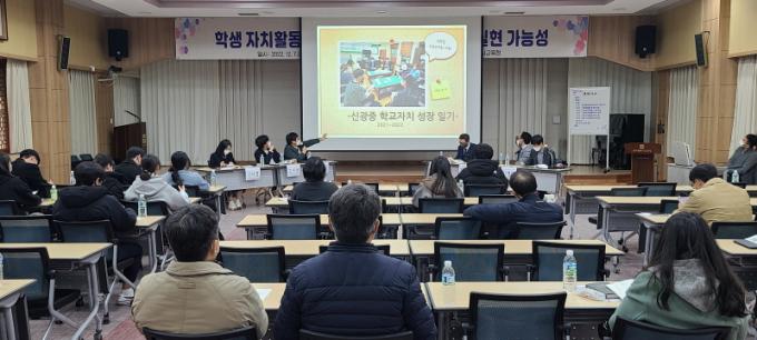Á¶¹Ì¼÷ ±³»ç(½Å±¤Áß, Çб³ÀÚÄ¡ ¸ðµ¨Çб³ ¿î¿µ)´Â ¡®½Å±¤Áß Çб³ÀÚÄ¡ ¼ºÀå Àϱ⡯¶ó´Â ÁÖÁ¦·Î À̾߱⸦ Ç®¾î³Â´Ù. ¡ãÇлýȸ ¼±°Å °úÁ¤°ú ´ç¼±Áõ ¼ö¿© ¡ãÇкθðȸ °£´ãȸ¿Í ¹êµå ¿î¿µ ¡ã±³Á÷¿øÈ¸ Ȱµ¿ ¡ãÇлýȸ°¡ Âü¿©ÇÏ´Â ±³À°°úÁ¤ Æò°¡È¸ µî ±³À°ÁÖüµéÀÇ ÀÚġȰµ¿°ú Çù·ÂȰµ¿ »ç·Ê¸¦ °øÀ¯Çß´Ù. ÀÌ¿Í ÇÔ²² ¡®Çб³ÀÚÄ¡´Â ±³À°ÁÖüµé¿¡°Ô Àڱ⠽ÇÇöÀÇ ±âȸ¸¦ Á¦°øÇÏ´Â °Í¡¯À̶ó°í °Á¶Çß´Ù. ±èÁø·Ä Çлý(±¤ÁÖÀμº°í, 11±â °íµîÇлýÀÇȸ ÀÇÀå)Àº ¡®¿ì¸®¿¡°Ôµµ ¸¶ÀÌÅ©°¡ ÁÖ¾îÁ³½À´Ï´Ù¡¯¶ó´Â ÁÖÁ¦·Î ¡ã°íµîÇлýÀÇȸ¿¡ ´ëÇÑ ¾È³» ¡ã°íµîÇлýÀÇȸ SNS µîÀ» ÅëÇÑ ÇлýÀαÇÁ¶·Ê ÇÙ½É ³»¿ë ¾È³» ¡ãû¼Ò³â ÂüÁ¤±Ç Áý´ãȸ ¡ã¾ÈÀüÇÑ »çȸ¸¦ À§ÇÑ µÎ Â÷·ÊÀÇ ¼º¸í¹® ¹ßÇ¥¿Í °í±³»ý ¼¸í ¿îµ¿ ¡ã°í·ÁÀÎ µ¿Æ÷ µ½±â ¸ð±Ý ¿îµ¿ µî Ȱµ¿»ç·Ê¸¦ °øÀ¯Çß´Ù. û¼Ò³â Á¤Ä¡Âü¿©¿¡ ´ëÇÑ ¹ý¡¤Á¦µµÀû ±âȸ º¸Àå¿¡ ºñÇØ ±× ±â¹ÝÀÌ µÇ´Â ÇлýÀÚÄ¡ ±âȸ¿Í ¿©°Ç ºÎÁ·ÇÏ´Ù´Â Á¡¿¡¼ ¾Æ½¬¿òÀ» Åä·ÎÇϱ⵵ Çß´Ù.