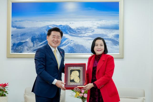 ¿À¿µÈÆ Áö»ç´Â 8ÀÏ ¿ÀÈÄ 5½Ã Áý¹«½Ç¿¡¼ ÀÀ¿ì¿º Ƽ ÅÁ(Nguyễn Thị Thanh) ±¹È¸ »óÀÓÀ§¿øÀ» ºñ·ÔÇÑ º£Æ®³² ¹æÇÑ´ëÇ¥´Ü°ú ¸é´ãÇß´Ù. º£Æ®³² ¹æÇÑ´ÜÀº Á¦ÁÖ-º£Æ®³² °£ ¼öÃâǰ¸ñ È®´ë, Á¦ÁÖ-º£Æ®³² ÁÖ¿ä µµ½Ã(ȣġ¹Î, ÇϳëÀÌ µî) °£ Á÷Ç× °³¼³, Àç»ý¿¡³ÊÁö µî ¹Ì·¡»ê¾÷ ºÐ¾ß ¹ßÀü, ³óÃà¼ö»ê¾÷ ¹× °ü±¤ ºÐ¾ß ±³·ùÇù·Â °È ¹æ¾È µîÀ» ³íÀÇÇϱâ À§ÇØ Á¦ÁÖ¸¦ ã¾Ò´Ù.