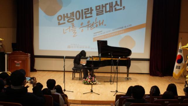[½Ã»çÁ¾ÇսŹ® = °í¼º¹Î ±âÀÚ] Á¦ÁÖÇлý¹®È­¿ø(¿øÀå À̱ݳ²) °ø¸³´ë¾È±³À°À§Å¹±³À°±â°ü ¾î¿ï¸²Çб³´Â Áö³­ 12¿ù 9ÀÏ 2Çбâ À§Å¹±³À°¿¡ Âü¿©ÇÏ¿´´ø Çлý 28¸í(1Çгâ 14¸í, 2Çгâ 14¸í)¿¡ ´ëÇÑ ¼ö·á½Ä¡®¾È³çÀ̶õ ¸» ´ë½Å, ³Ê¸¦ ÀÀ¿øÇØ¡¯¸¦ ÁøÇàÇß´Ù.
