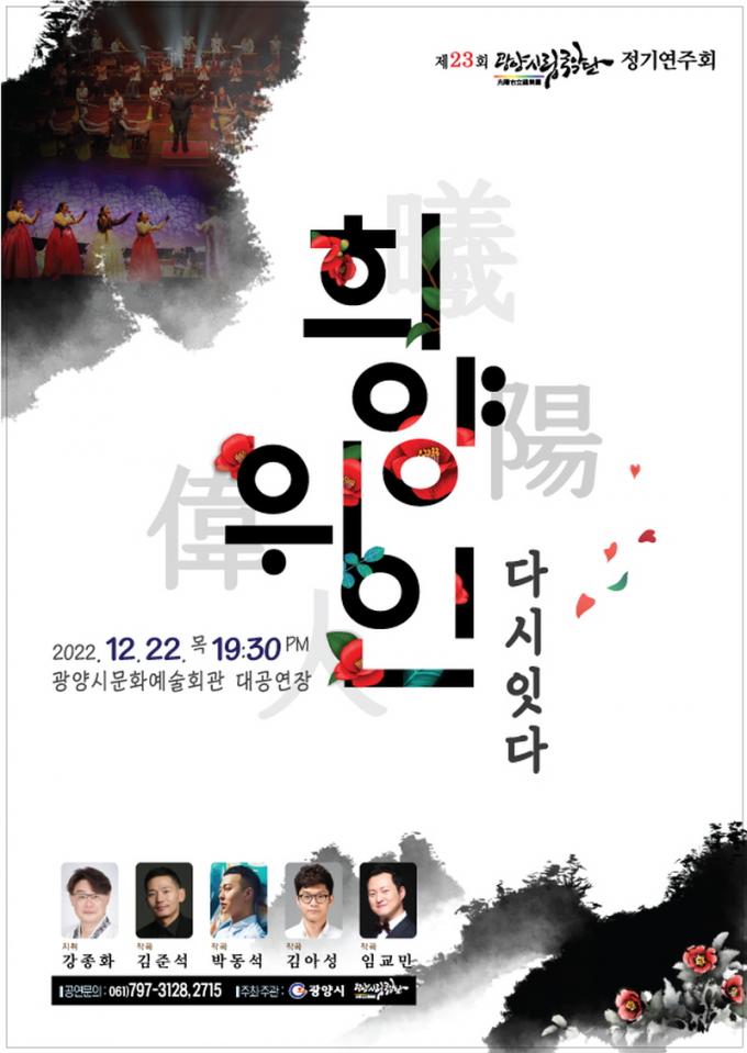 À̹ø °ø¿¬Àº ±¤¾çÀÇ Àι°À» À½¾ÇÀ¸·Î Ç¥ÇöÇØ »õ·Ó°Ô Á¶¸íÇϰí Àι°ÀÇ ¿¬´ë±â¸¦ ÅëÇØ ±¤¾çÀÇ °ú°Å¿Í ÇöÀ縦 ÀÕ°í Áö¿ªÀÇ ¹Ì·¡¿¡ ´ëÇÑ ¸Þ½ÃÁö¸¦ ´ã¾Æ âÀÛ ±¹¾ÇÀ¸·Î ¼±º¸ÀÏ ¿¹Á¤ÀÌ´Ù.