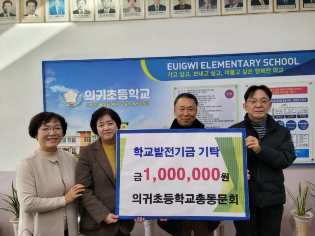 Ãѵ¿¹®È¸Àå´ÔÀº¡°¾¿¾¿ÇÏ°Ô Àڶ󳪴 ÀDZÍÃÊ ¾î¸°À̵éÀÇ Ã¼À°È°µ¿ ¹× ±³À°È°µ¿¿¡ Á¶±ÝÀ̳ª¸¶ º¸ÅÆÀÌ µÇ±æ ¹Ù¶ó´Â ¸¶À½À¸·Î Çб³¹ßÀü±â±ÝÀ» ±âŹÇÑ´Ù¡±´Â Ãѵ¿¹®È¸ÀÇ ÀǰßÀ» ÀüÇß´Ù.