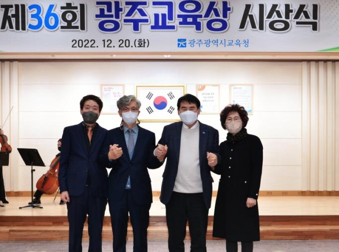 ÇÑÆí, ÀÌÁ¤¼± ±³À°°¨Àº ¡°¼ö»óÇϽŠºÐµéÀÇ °øÀûÀº ¿ì¸® ±¤ÁÖ±³À°ÀÇ Å« ¹ßÀÚÃë·Î ³²¾Æ ¿À·¡µµ·Ï ±â¾ïµÉ °Í¡±À̶ó¸ç ¡°¿À´Ã Çà»ç°¡ ¸ðµç ±³Á÷¿øµéÀÌ ¼ö»óÇϽŠºÐµéÀÇ °øÀûÀ» º»¹Þ¾Æ ¹Ì·¡¸¦ ¿¾î°¡´Â Çõ½ÅÀû Æ÷¿ë±³À° ½ÇÇöÀ» À§ÇØ °¢ÀÚ°¡ ÃÖ¼±À» ´ÙÇÏ´Â °è±â°¡ µÇ±â¸¦ ±â´ëÇÑ´Ù¡±°í ¸»Çß´Ù.