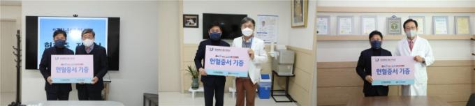 Àü³²´ë ¿©¼öÄ·ÆÛ½º´Â 12¿ù 20ÀÏ ÇåÇ÷Áõ 351¸Å¸¦ ÀÇ·áÇù¾àÀ» ¸Î°í ÀÖ´Â ¿©¼öÀü³²º´¿ø(Á¤Á¾±æ¿øÀå)°ú ¿©¼öÁß¾Óº´¿ø(¹Ú±âÁÖ¿øÀå), Á¦ÀϺ´¿ø(°º´¼®¿øÀå)(¿ÞÂÊ »çÁøºÎÅÍ)¿¡ °¢°¢ 117À徿 Àü´ÞÇß´Ù.