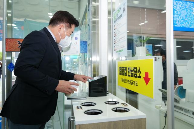 ÀÌ¿Í °ü·Ã, ȯ°æºÎ¿Í ÀÚ¿ø¼øÈ¯º¸Áõ±Ý°ü¸®¼¾ÅÍ´Â ÀÏȸ¿ëÄÅ º¸Áõ±ÝÁ¦ ´ë»ó ¸ÅÀåÀÇ ºÎ´ãÀ» ÁÙÀ̰í, ¼ÒºñÀÚ°¡ Æí¸®ÇÏ°Ô ÄÅÀ» ¹Ý³³ÇÒ ¼ö ÀÖµµ·Ï ¸ÅÀå ¿Ü °ø°ø¹Ý³³Ã³¸¦ È®´ëÇÏ°í º¸Áõ±ÝÁ¦ Âü¿© ¸ÅÀå¿¡´Â ¹«ÀÎ °£ÀÌȸ¼ö±â ¼³Ä¡¸¦ Áö¿øÇϰí ÀÖ´Ù.