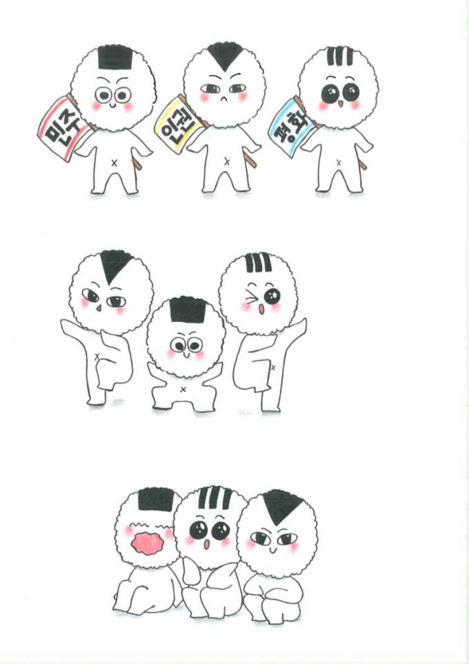 ij¸¯ÅÍ ÃâǰÀÛÀ¸·Î´Â Âü½Å¼ºÀ» Àß »ì¸° ¿©·¯ ÀÛǰµéÀÌ µ¸º¸¿´´Ù. ÀÌ Áß 5¡¤18¹ÎÁÖȿ ´ç½Ã ±¤ÁֽùÎÀÌ ¸¸µç ÁÖ¸Ô¹äÀÌ ¹ÎÁÖÁÖÀÇ, ÆòÈ, ÀαÇÀÇ »ó¡¹°À̶ó´Â »ý°¢À» ´ã¾Æ ÁÖ¸Ô¹äÀ» Ȱ¿ëÇØ ź»ýÇÑ Ä³¸¯ÅÍ ¡®¹ÎÁÖ‧ÀαÇ‧ÆòÈ¡¯°¡ ÃÖÁ¾ ¿ì¼öÀÛÀ¸·Î ¼±Á¤µÆ´Ù.
