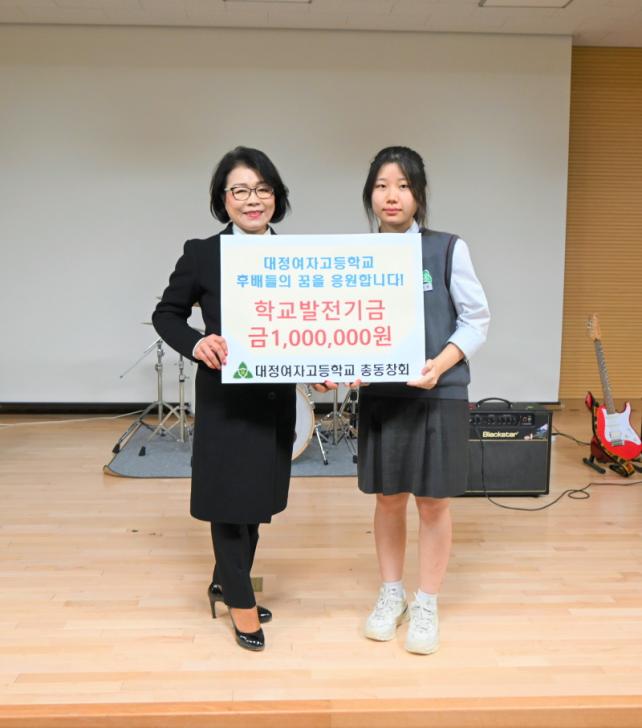 ÇÑÆí, À̳¯ Àü´ÞµÈ ÀåÇÐ±Ý 1¹é¸¸ ¿øÀº µ¿¹® ¼±¹èµéÀÌ ÈĹèµéÀ» »ç¶ûÇÏ´Â ¸¶À½À¸·Î Á¶¼ºµÇ¾ú´Ù. ´ëÁ¤¿©ÀÚ°íµîÇб³ Ãѵ¿Ã¢È¸(ȸÀå À̼÷ÀÚ)´Â 2017³âºÎÅÍ ¸Å³â ÈÄ¹è »ç¶û ÀåÇбÝÀ» Àü´ÞÇϰí ÀÖ´Ù.