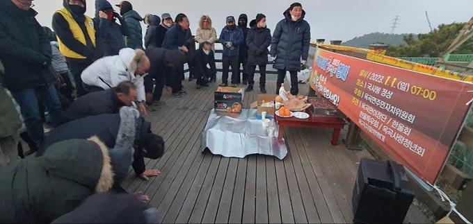 ÇÑÆí, ¹®¼º±â ¿Á°î¸éÀåÀº ¡°À̹ø Çà»ç´Â »õÇØ ù³¯ ¶°¿À¸£´Â ÀÏÃâÀ» ¹Ù¶óº¸¸ç »õ·Î¿î ¸¶À½À¸·Î ÇÑ ÇØ¸¦ ¼³°èÇϰí ÈûÂù Ãâ¹ßÀ» ´ÙÁüÇϱâ À§ÇÑ ÀÚ¸®¿´´Ù¸ç, Èñ¸ÁÂ÷°í ¼Ò¸Á¿¡ Âù »õÇØ ¾ÆÄ§, °¡Á·°ú ÀÏÃâÀ» °¨»óÇÏ¸ç »õÇØ ÁÁÀº ±â¿îÀ» ¹ÞÀ¸¼Ì±æ ¹Ù¶õ´Ù¡±°í ¸»Çß´Ù.
