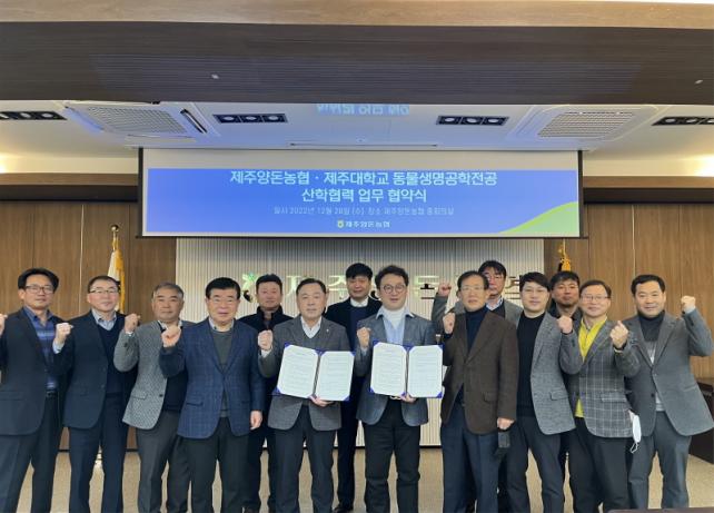 [½Ã»çÁ¾ÇսŹ® = °í¼º¹Î ±âÀÚ] Á¦ÁÖ´ëÇб³ »ý¸íÀÚ¿ø°úÇдëÇÐ µ¿¹°»ý¸í°øÇÐÀü°ø(ÁÖÀÓ±³¼ö µµ°æÅ¹)°ú Á¦Á־絷³óÇù(Á¶ÇÕÀå °í±ÇÁø)Àº ÃÖ±Ù Á¦Á־絷³óÇù ÁßȸÀǽǿ¡¼­ ¾çµ· »ê¾÷ ¹ßÀü ¹× Àü¹®Àη ¾ç¼ºÀ» À§ÇÑ »êÇÐÇù·Â Çù¾àÀ» ü°áÇß´Ù.
